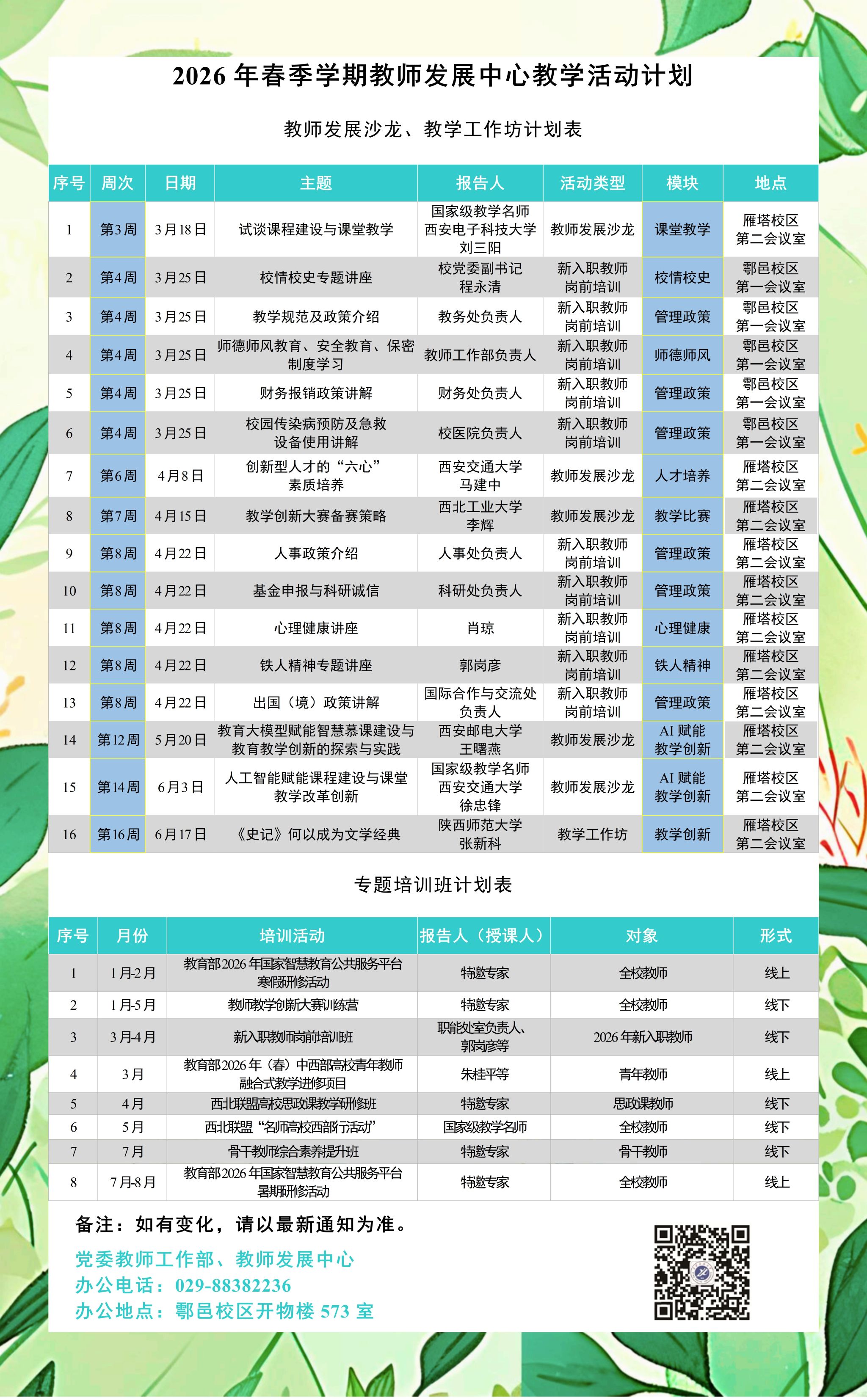 2026年春季学期教师发展中心教学活动计划-亚博im电竞